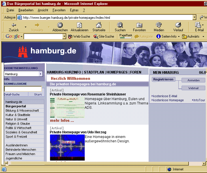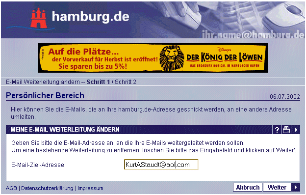 Hamburg.de in den e-Mail Bereich hineinstellt,