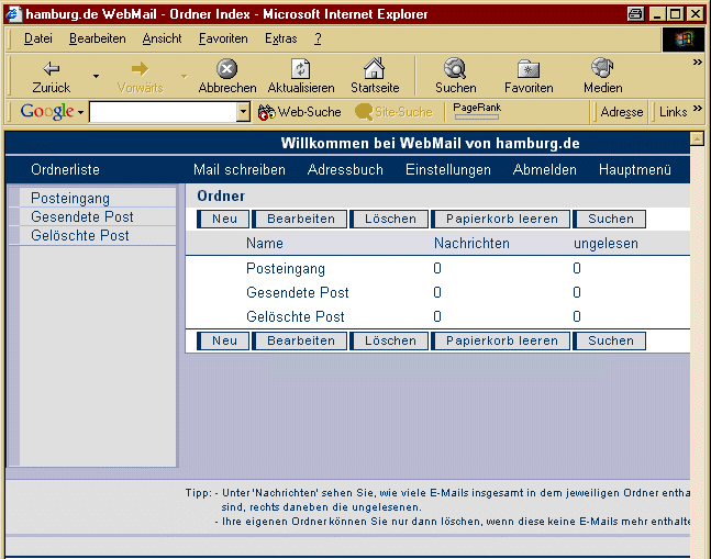 komfortablen WebMail von Hamburg.de arbeiten möchten.