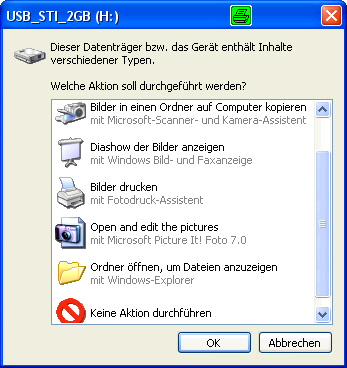 geändert hat. Ein dort neu auftauchendes Gerät ist vermutlich dein neuer USB-Stick. Im sich neu öffnenden kleinen Fenster bitte die Zeile "Ordner öffnen, um Dateien anzuzeigen" anklicken