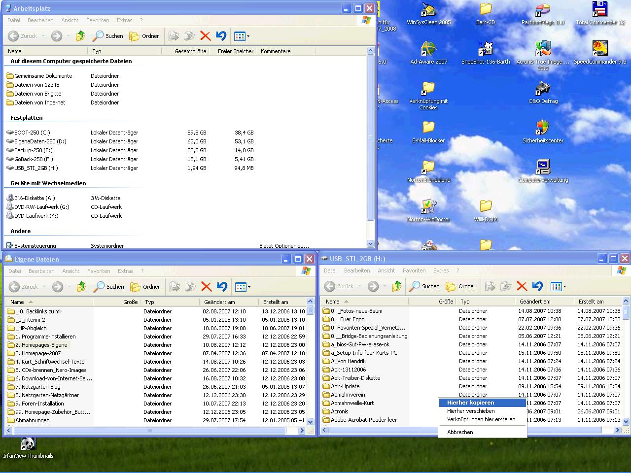 2. + 3. Den USB-Stick stöpseln und auf dem Arbeitsplatz nachsehen, was sich