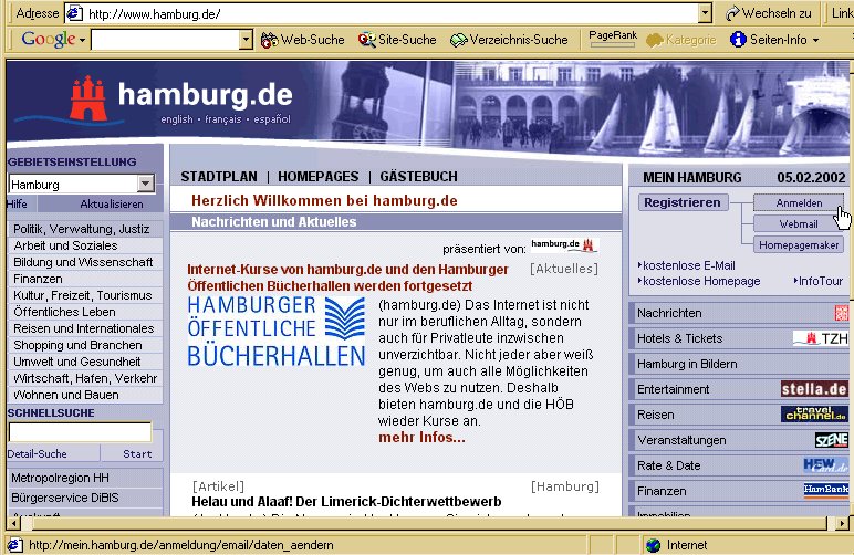 Bild 1: Die Startseite von Hamburg.de