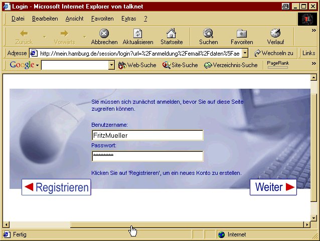 erstmalige Anmeldung (Registrierung) bei Hamburg.de erhaltet