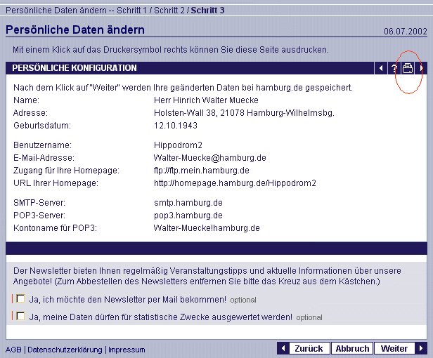 Tatsache, daß Fremde zum Paßwort-Knacken bei Hamburg.de die