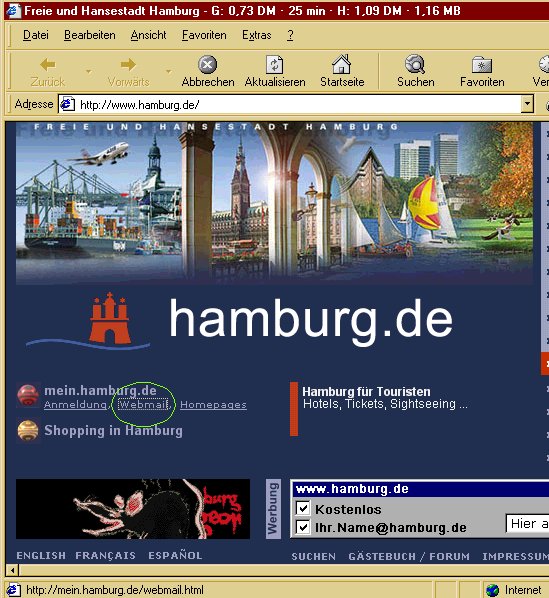 Hamburg.de in den e-Mail Bereich hineinstellt,