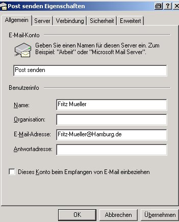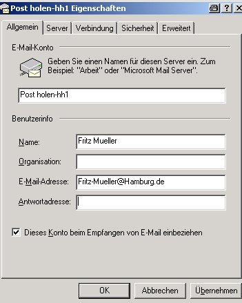 über "Extras" "Dienste" ein. Die notwendigen Daten sind: