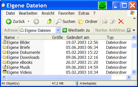 Ordner "Eigene Dateien" beschert, ob du das nun
